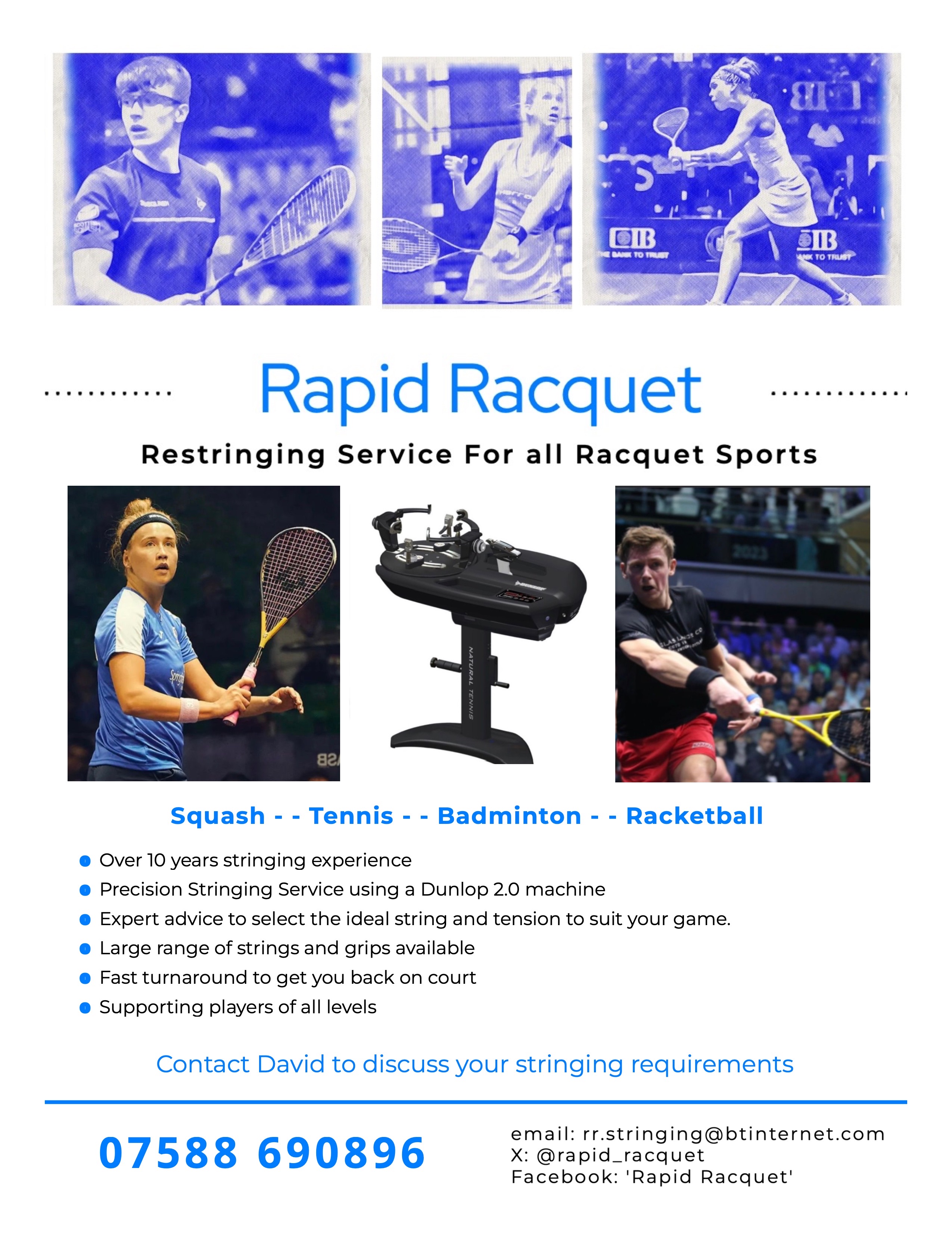 Restringing service for all Racquet Sports